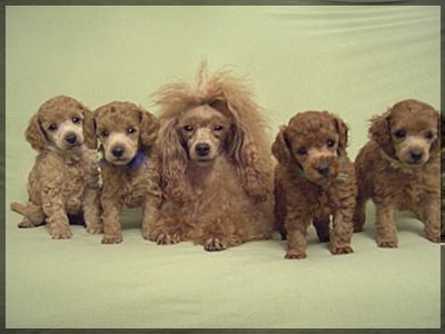 Die Mutti mit ihren vier Söhnen (Toypudel apricot - Wurf vom 31.12.07)
